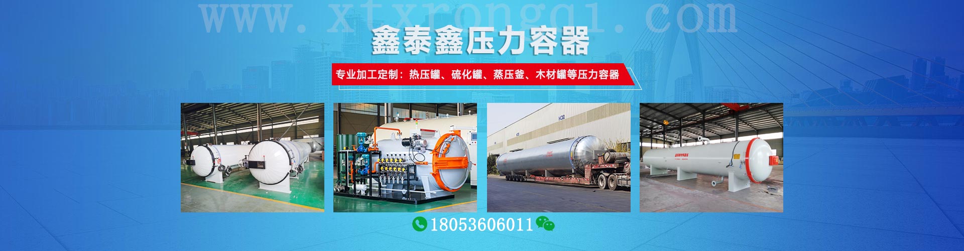 您好,歡迎來(lái)到山東鑫泰鑫智能裝備有限公司網(wǎng)站!我們?yōu)槟峁└鞣N規(guī)格的硫化罐、熱壓罐、蒸壓釜、木材罐等壓力容器設(shè)備及服務(wù)。